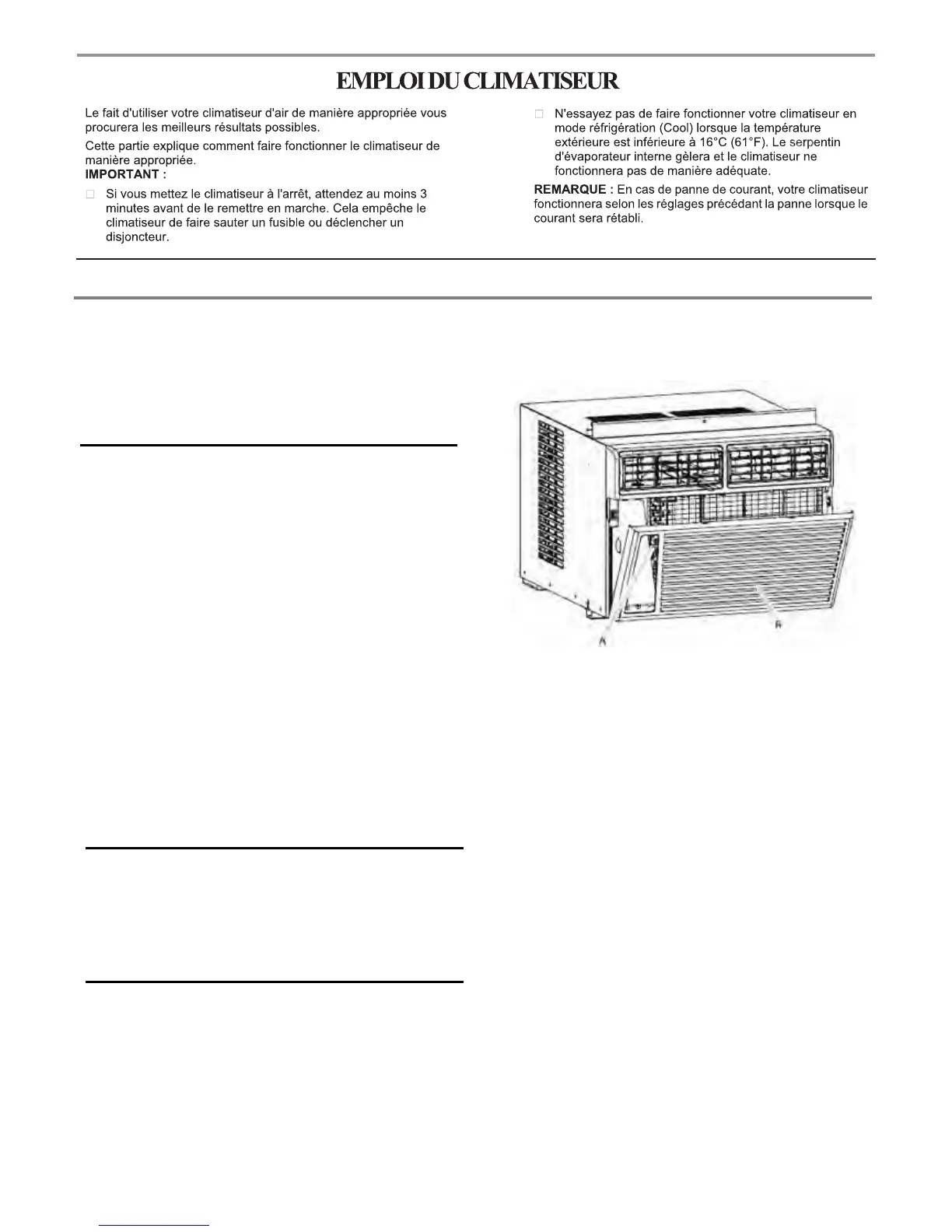 REMARQUE : Ne faites jamais fonctionner un climatiseur d'air