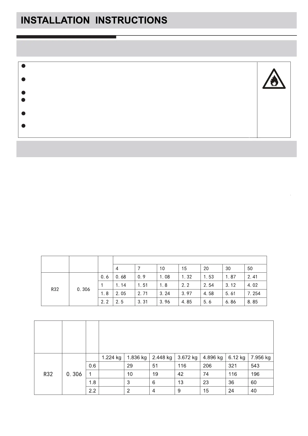 , R32 LFL is 0.306 kg/ m