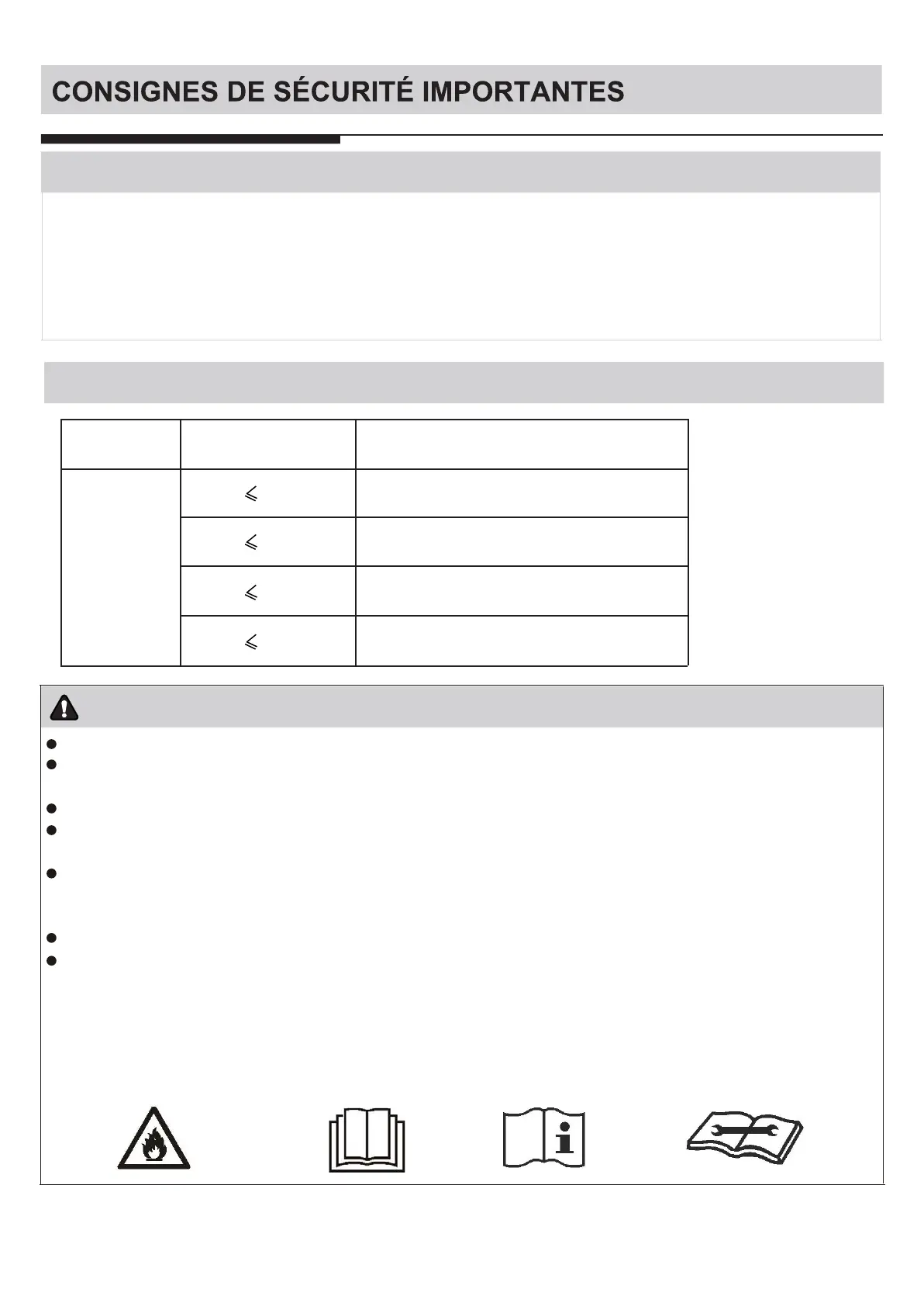 aucun risque de brûlure et d'explosion si vous vous conformez au tableau suivant pour installer votre climatiseur