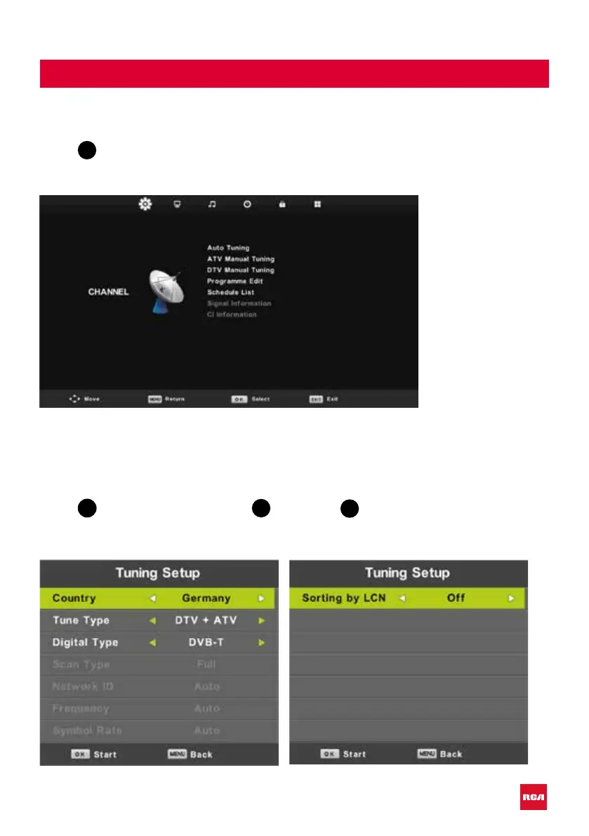 Press  to select the country and press  to select ‘Tune Type’ and ‘Digital