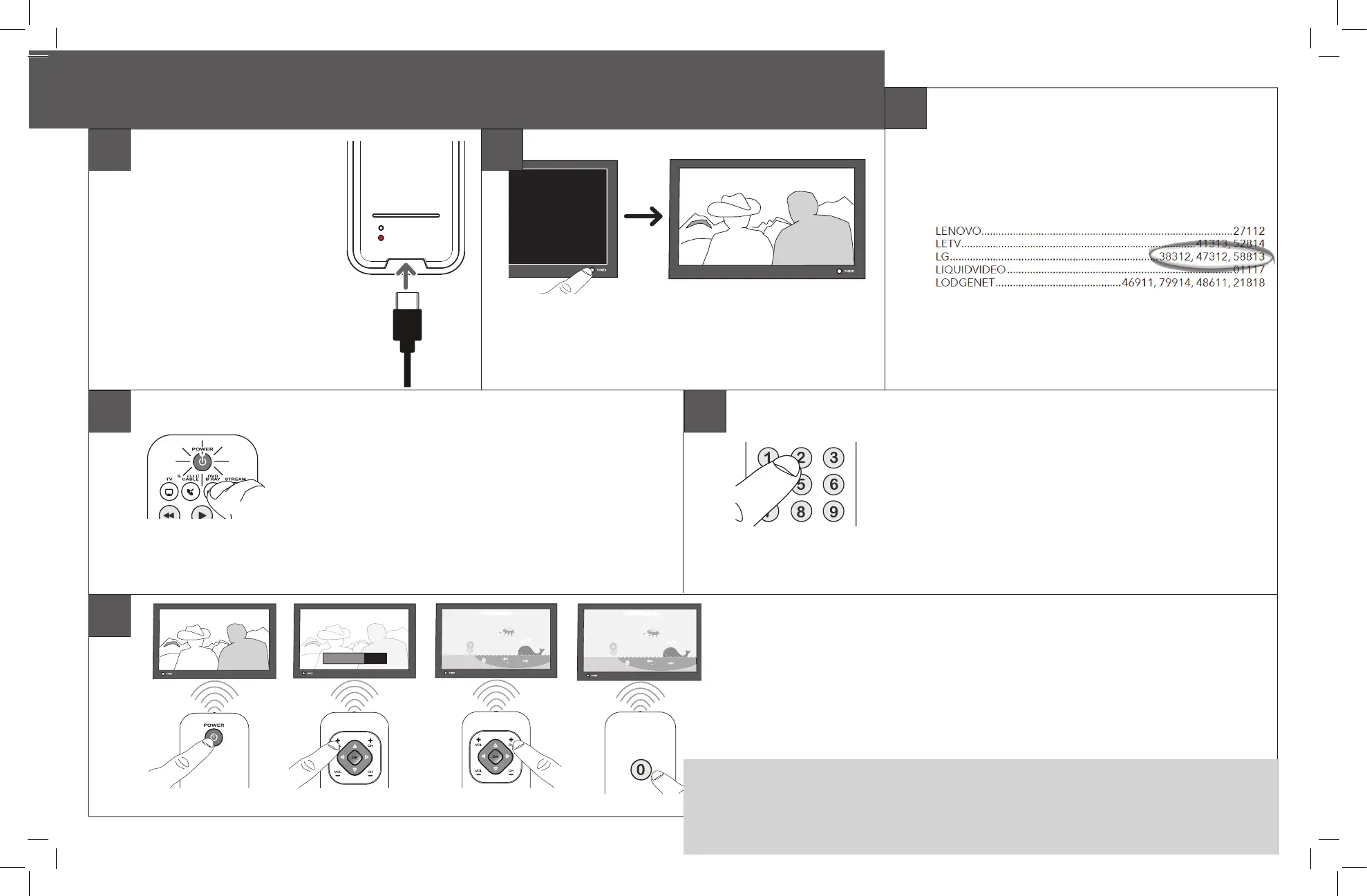 ejemplo, POWER, VOL+, CH+ y 0 para un TV).