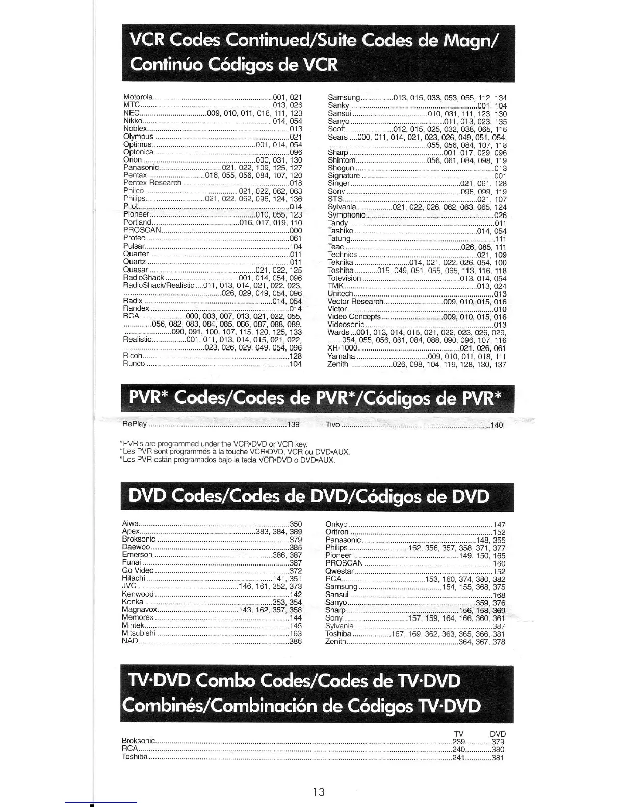 touche VCR.DVD, VCR