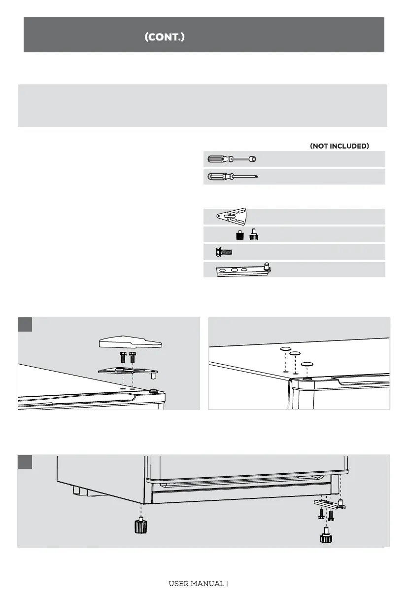 Remove the left leveling foot, the bottom hinge bracket by unscrewing the mounting screws.