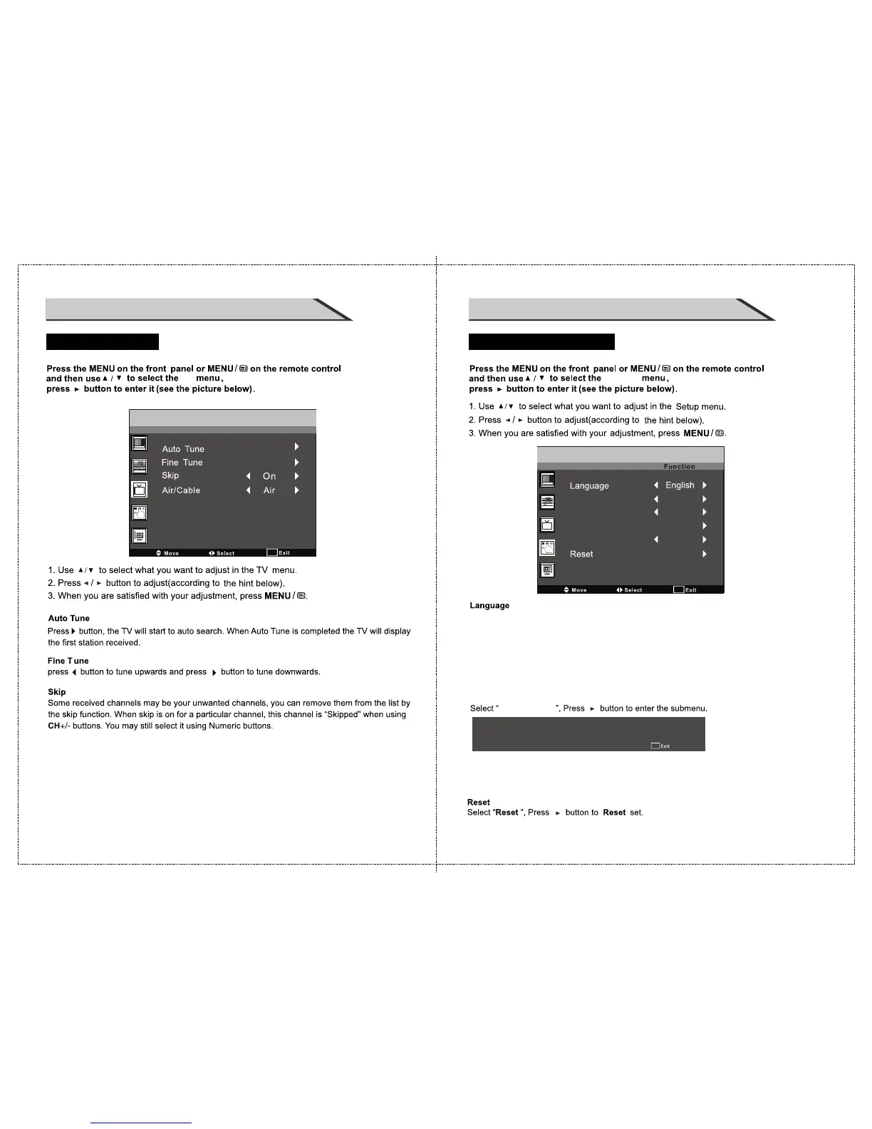 TV Menu Options