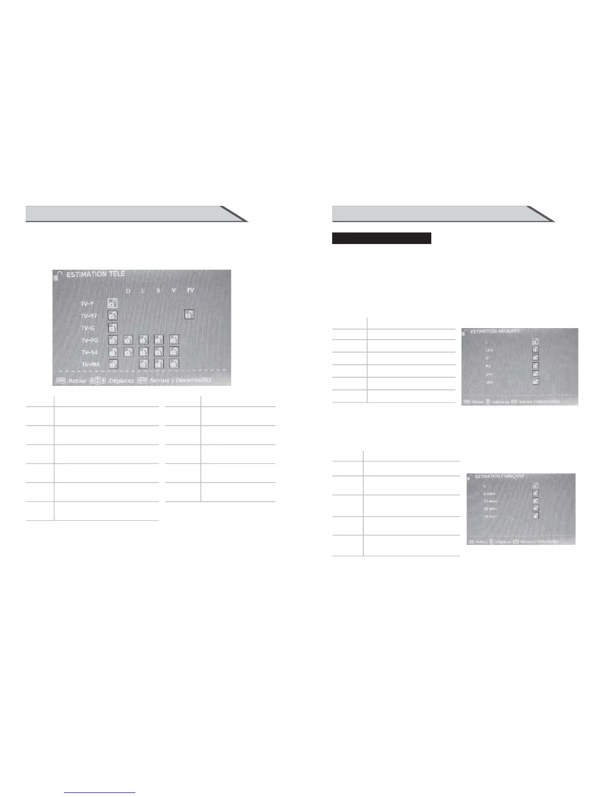 Pour le Canada, le réglage de rating comprend les options suivantes: Rating anglais,