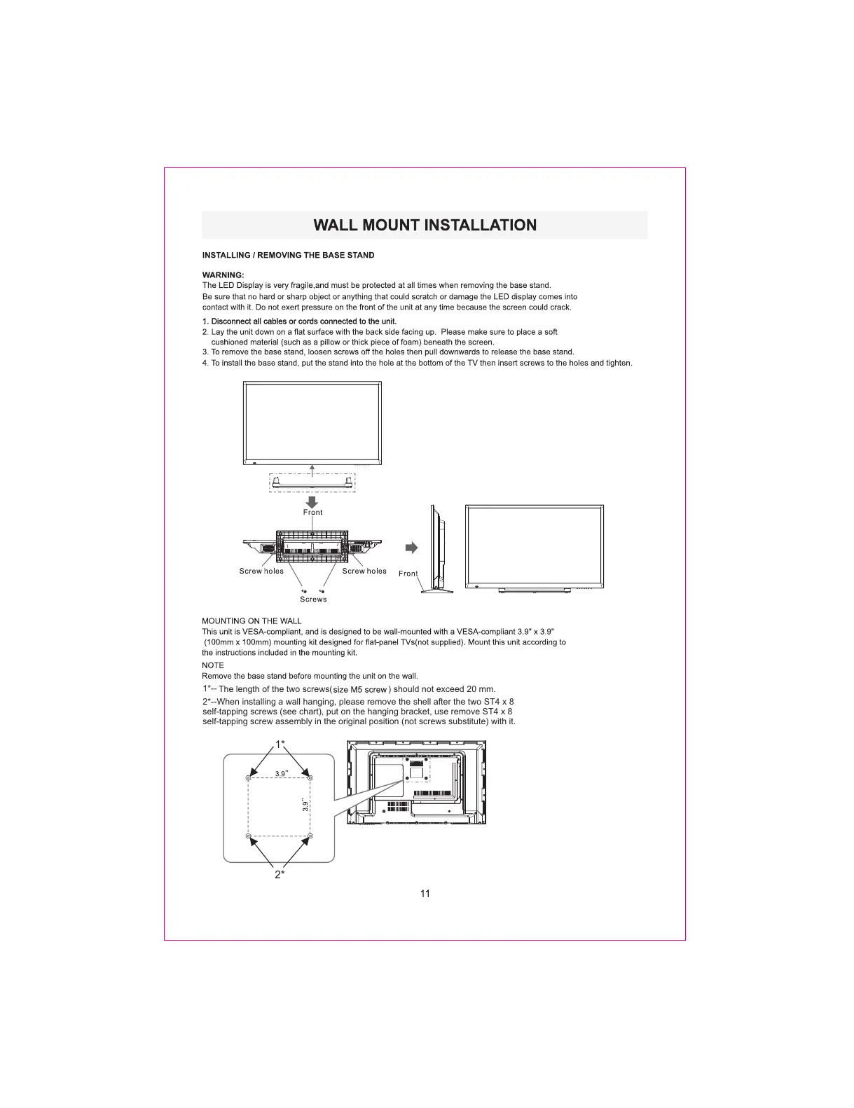 2*--When installing a wall hanging, please remove the shell after the two ST4 x 8