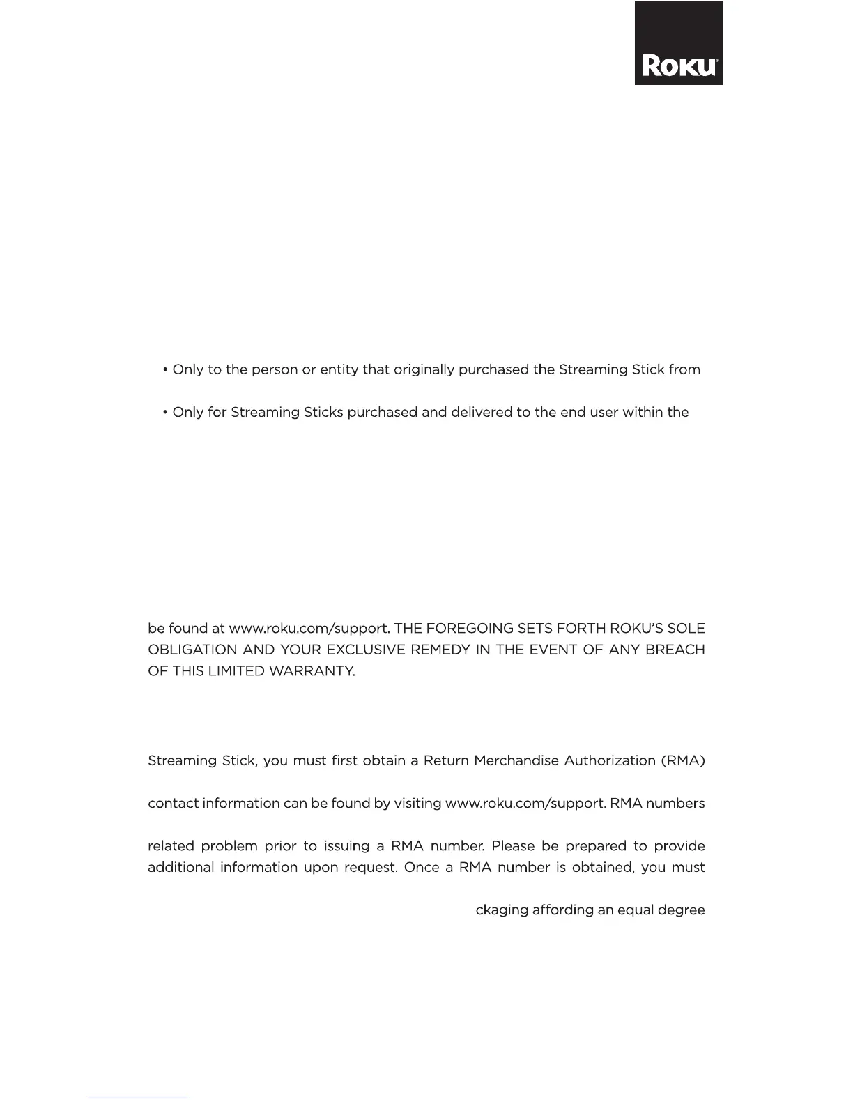 Roku warrants the Streaming Stick hardware against defects in materials and