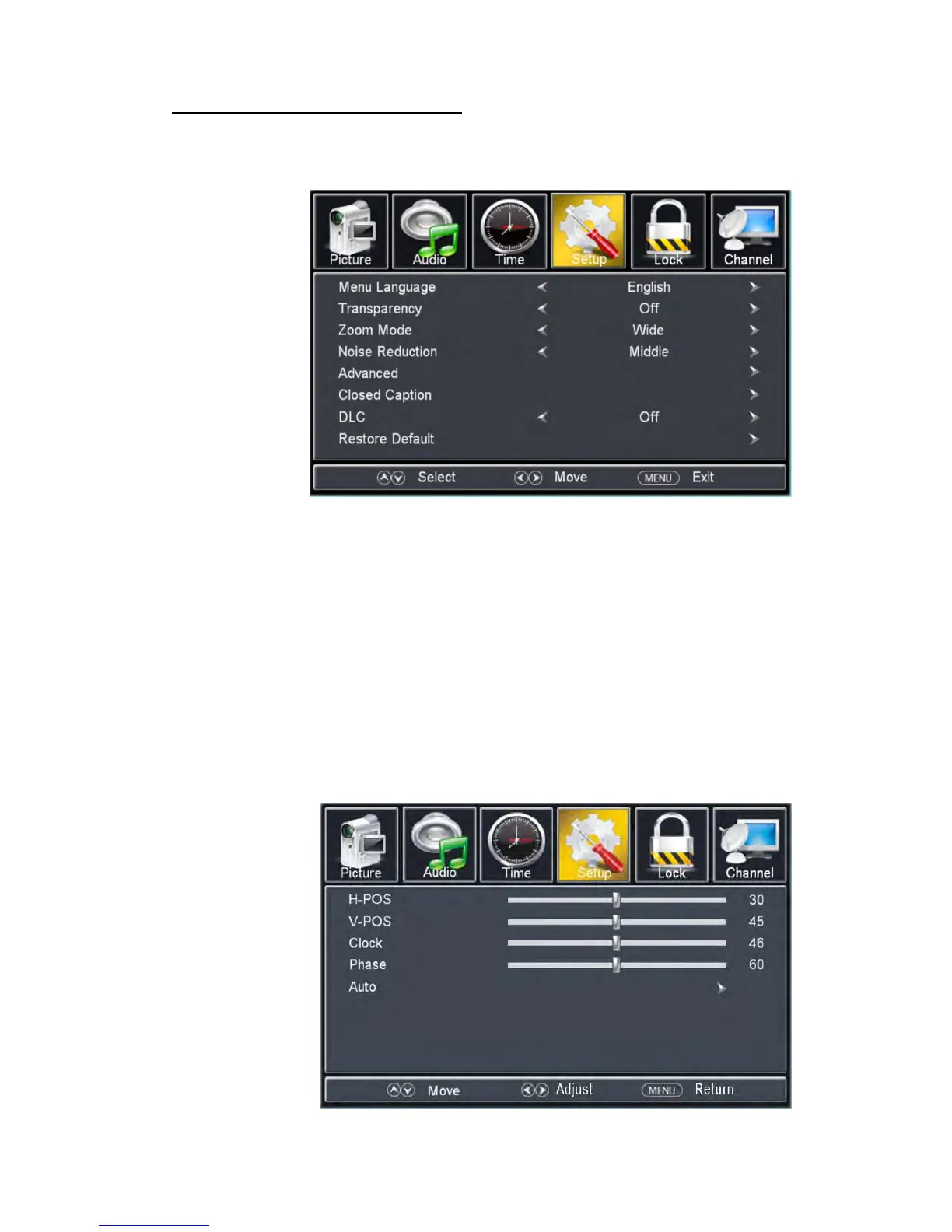 bouton « / » pour accéder au menu «Setup» (« Configuration »).