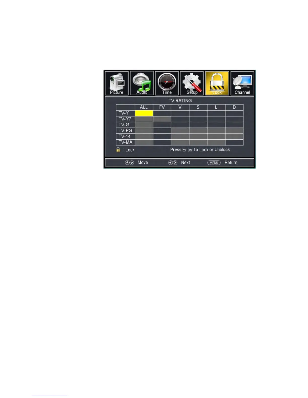 « / » et sur le bouton « / » pour sélectionner « TV ». Le sous-menu A apparaîtra