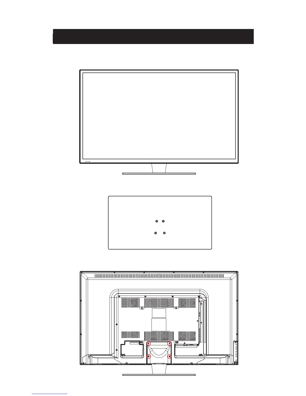 1. Pour fixer la base, placez l'unité d'affichage plate sur une table. Ensuite, fixez le support au fond du support. Vissez
