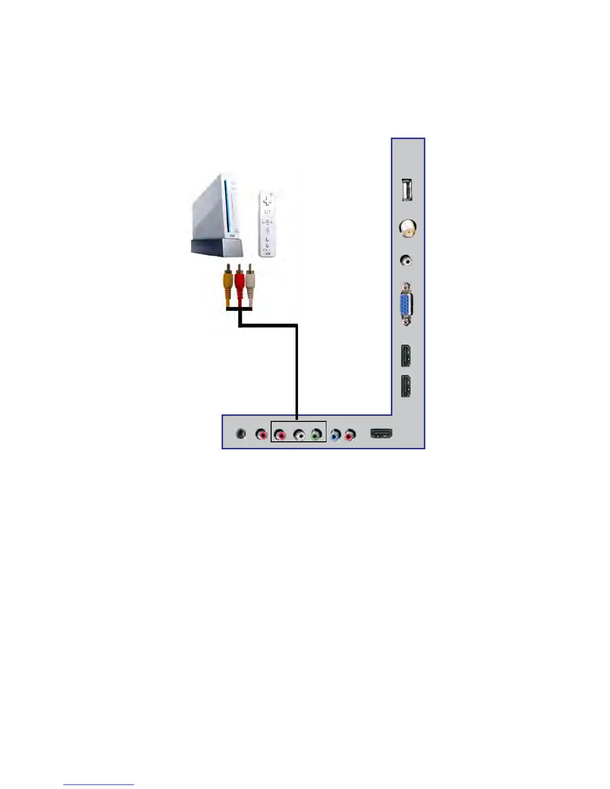 votre Wii™ et au port du connecteur blanc de l’AV à l’arrière de votre téléviseur HD.