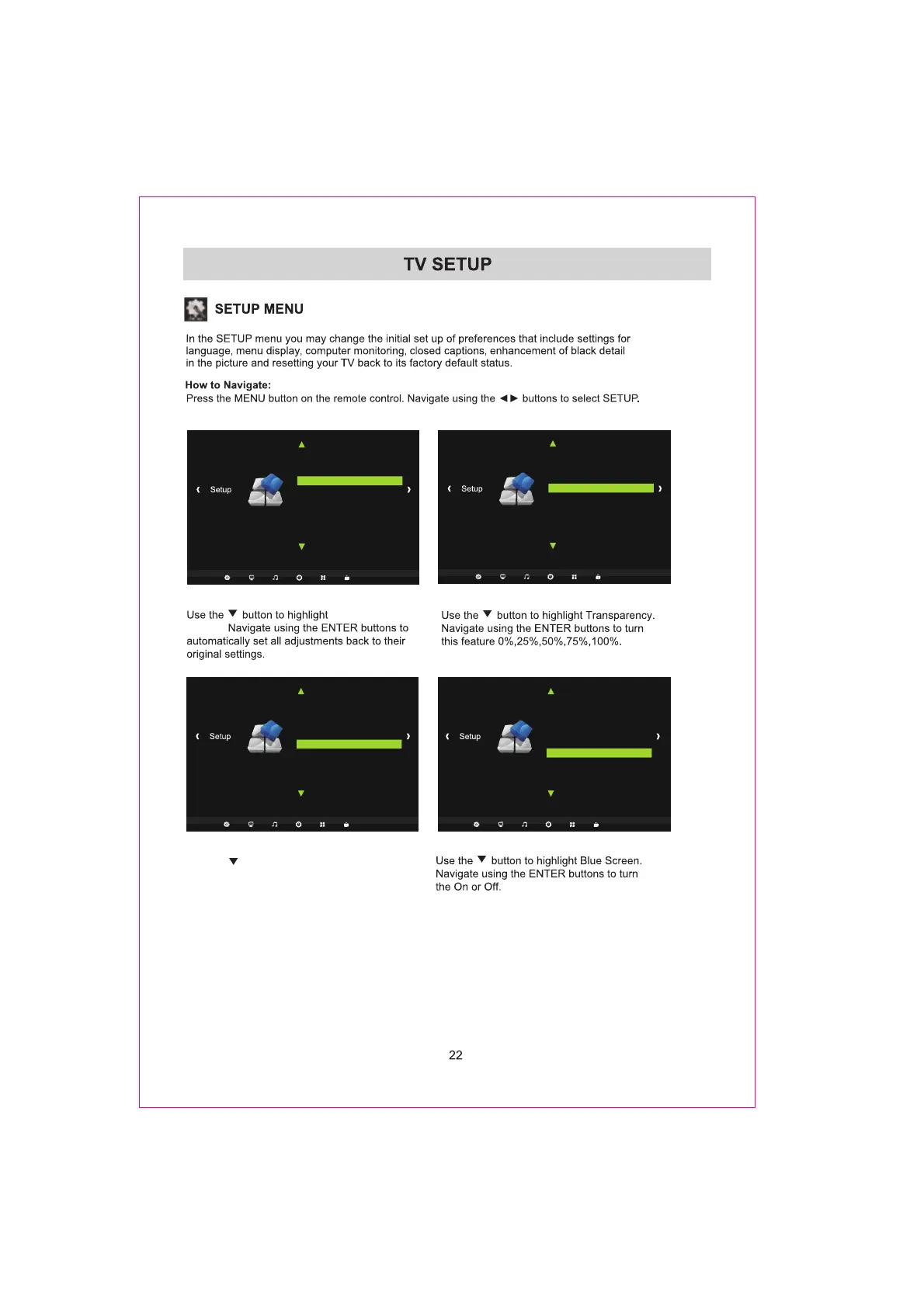Navigate using the ENTER button to enter