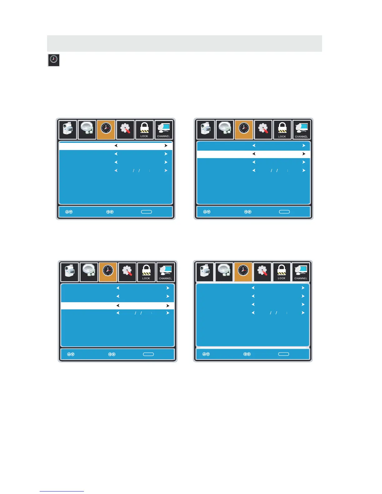 The clock will adjust automatically after the initial Channel Auto Scan of available broadcast