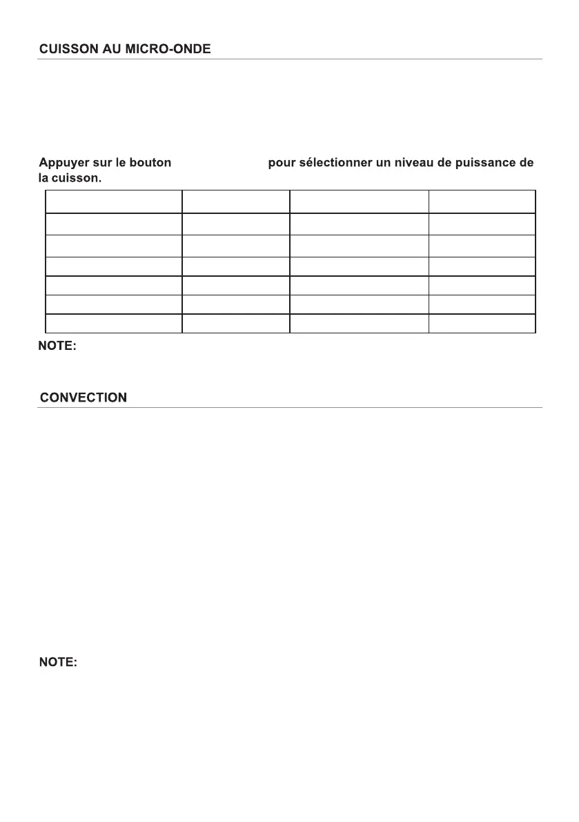 en appuyant sur le bouton POWER LEVEL. Si vous souhaitez cuire au niveau de puissance