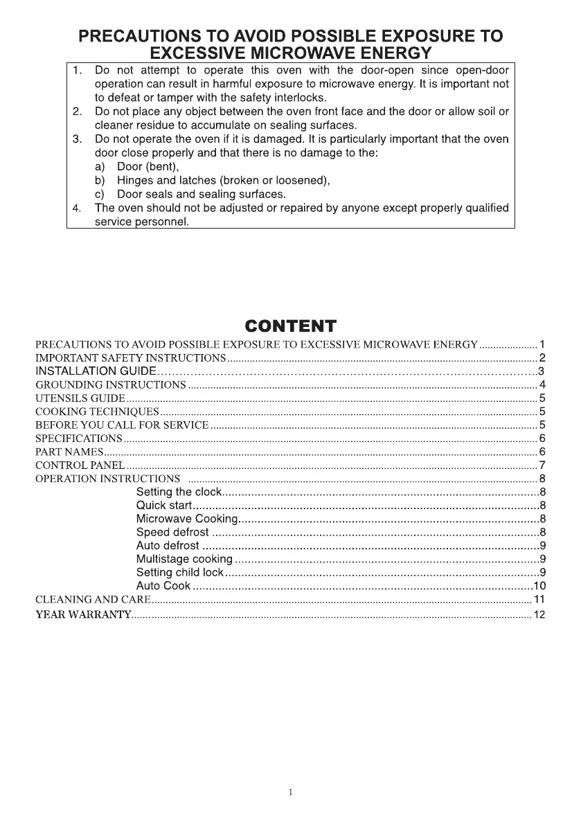 RCA RMW987-BLACK - Precautions for Microwave Energy Exposure