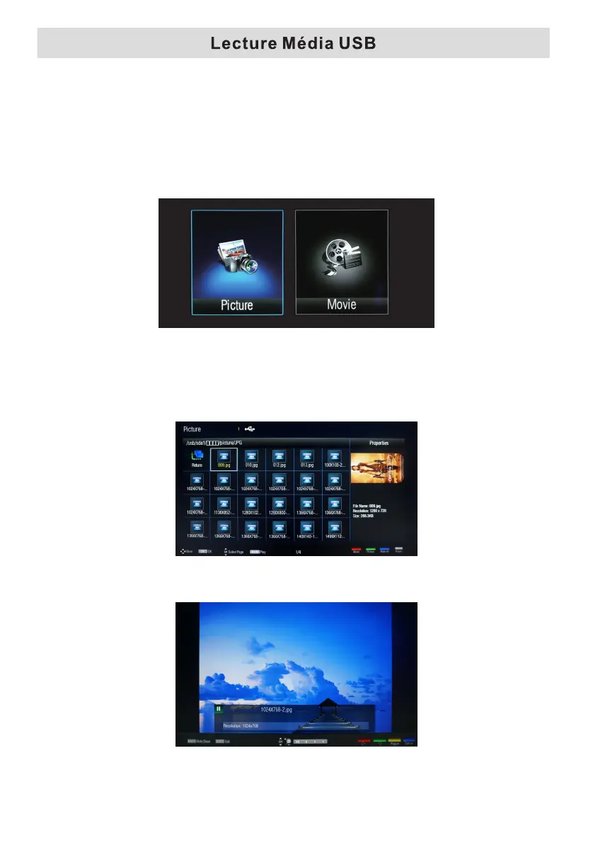 Appuyez sur le bouton /pour sélectionner Lecteur multimédia USB dans le menu Source,