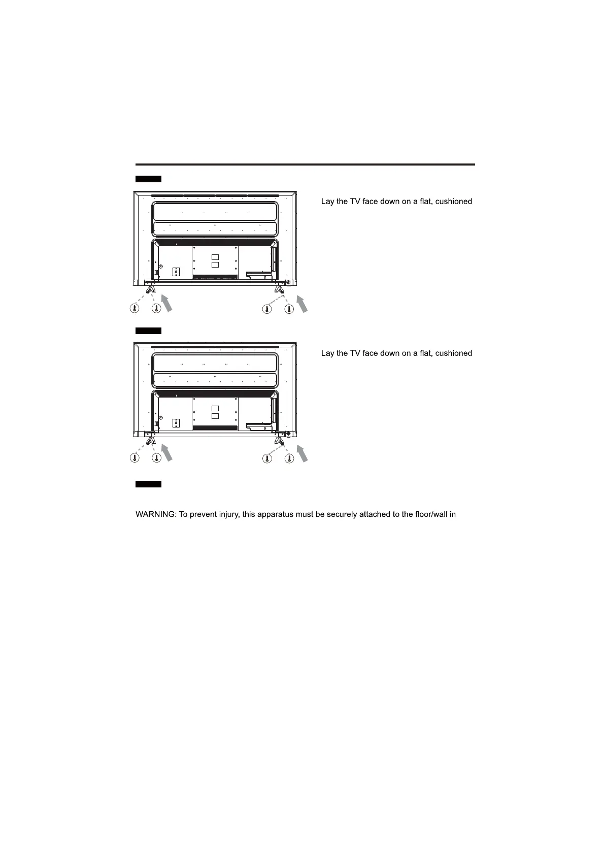 Never place a television set in an unstable location. A television set may fall, causing serious