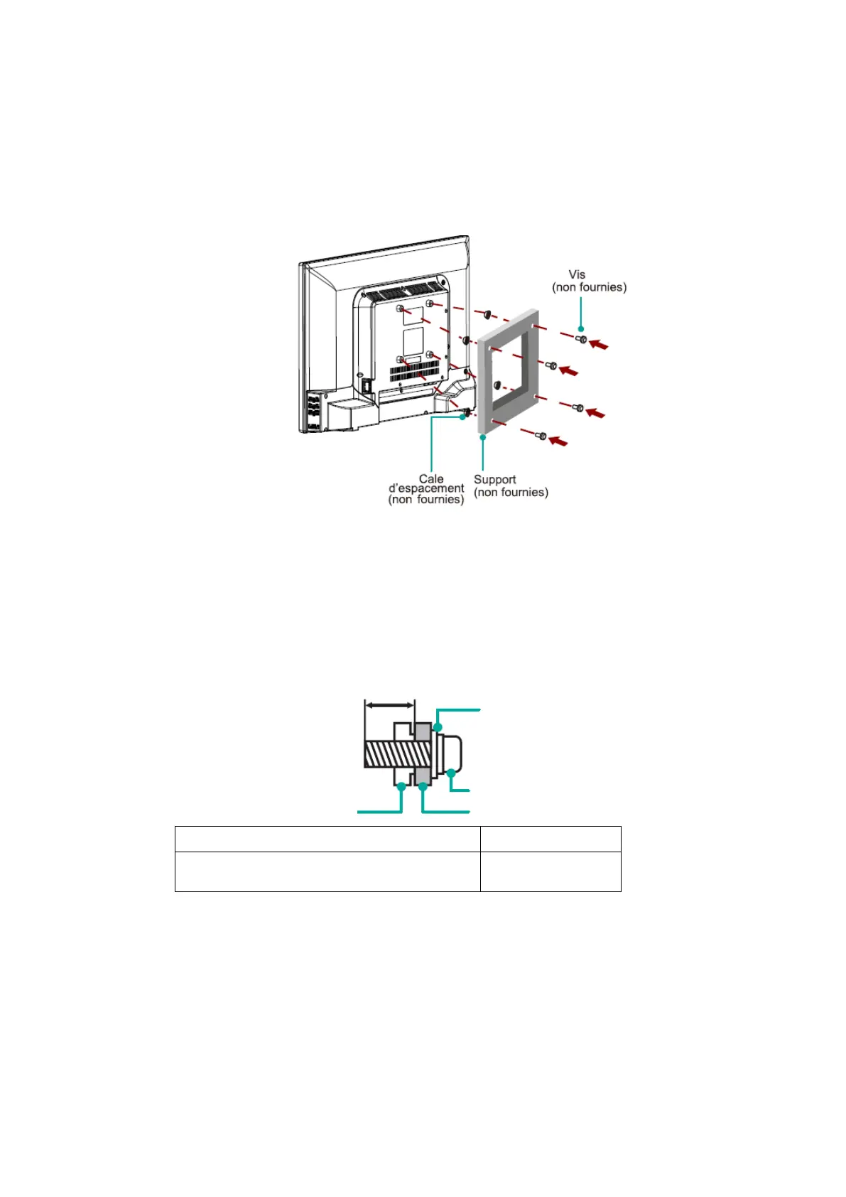 assurez-vous d’utiliser des vis de montage (non fourni) d’une longueur de 10 mm de la surface