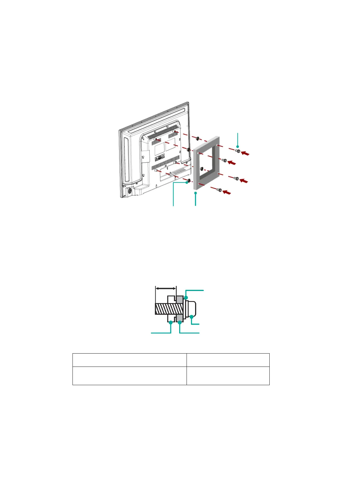 assurez-vous d’utiliser des vis de montage (non fourni) d’une longueur de 10 mm de la surface