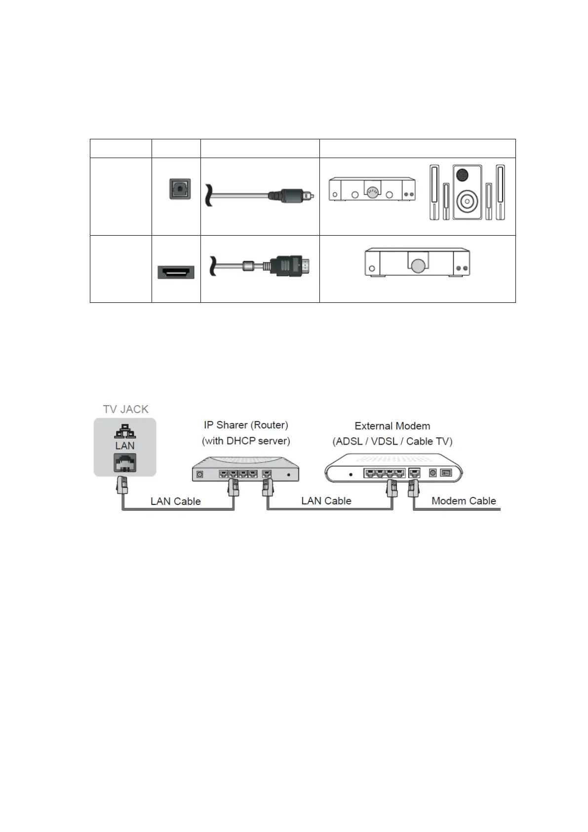 external modem or router using a LAN (Ethernet/Cat 5) cable (not provided). See the illustration