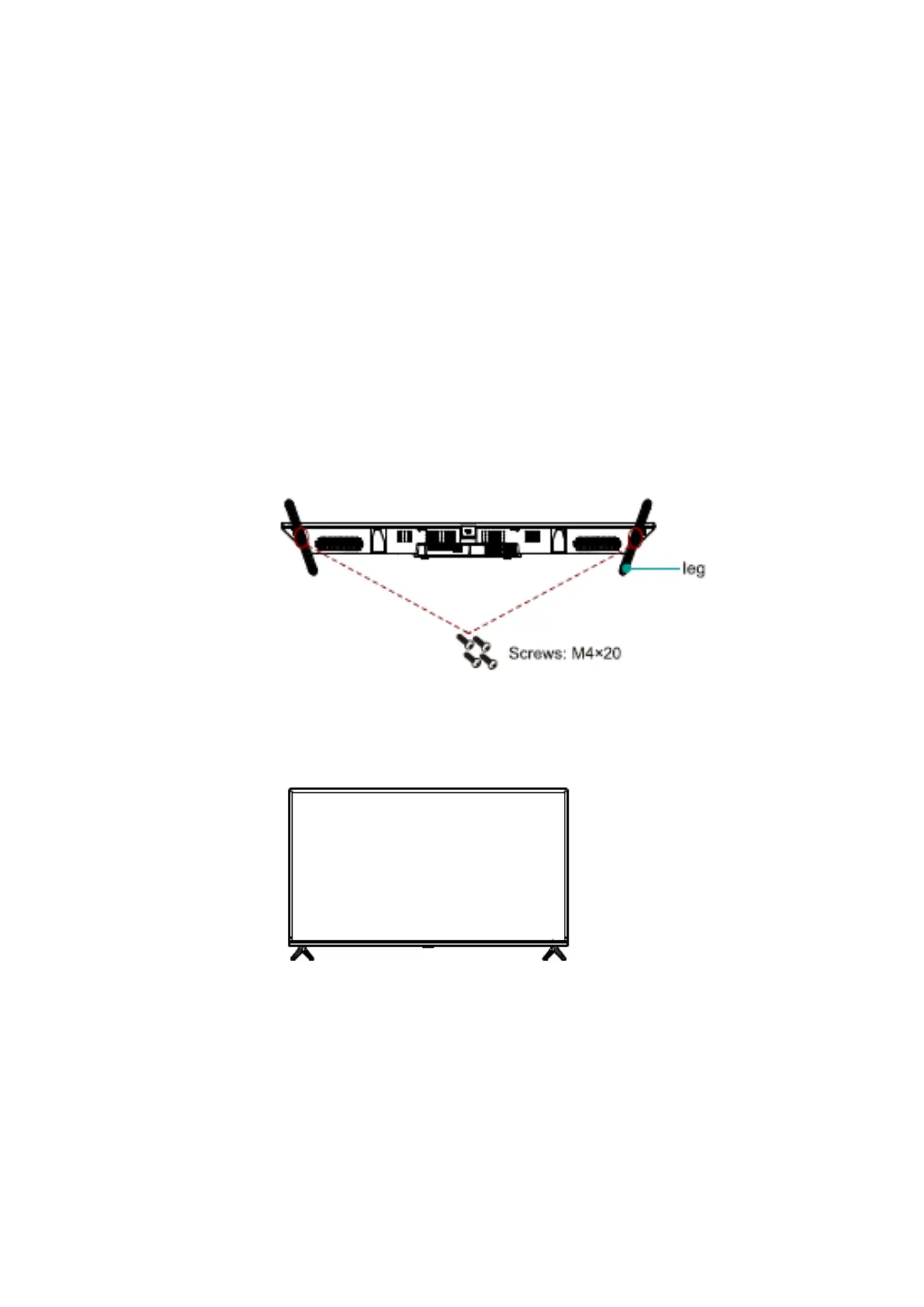 5. Placer les pieds dans les fentes au bas de la TV, insérez et resserrez les vis (disponibles dans