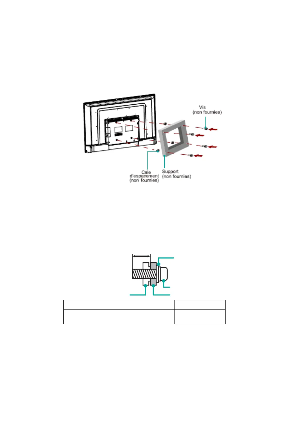 • Lorsque vous assemblez le support, assurez-vous d’utiliser les cales d’espacement (fournies
