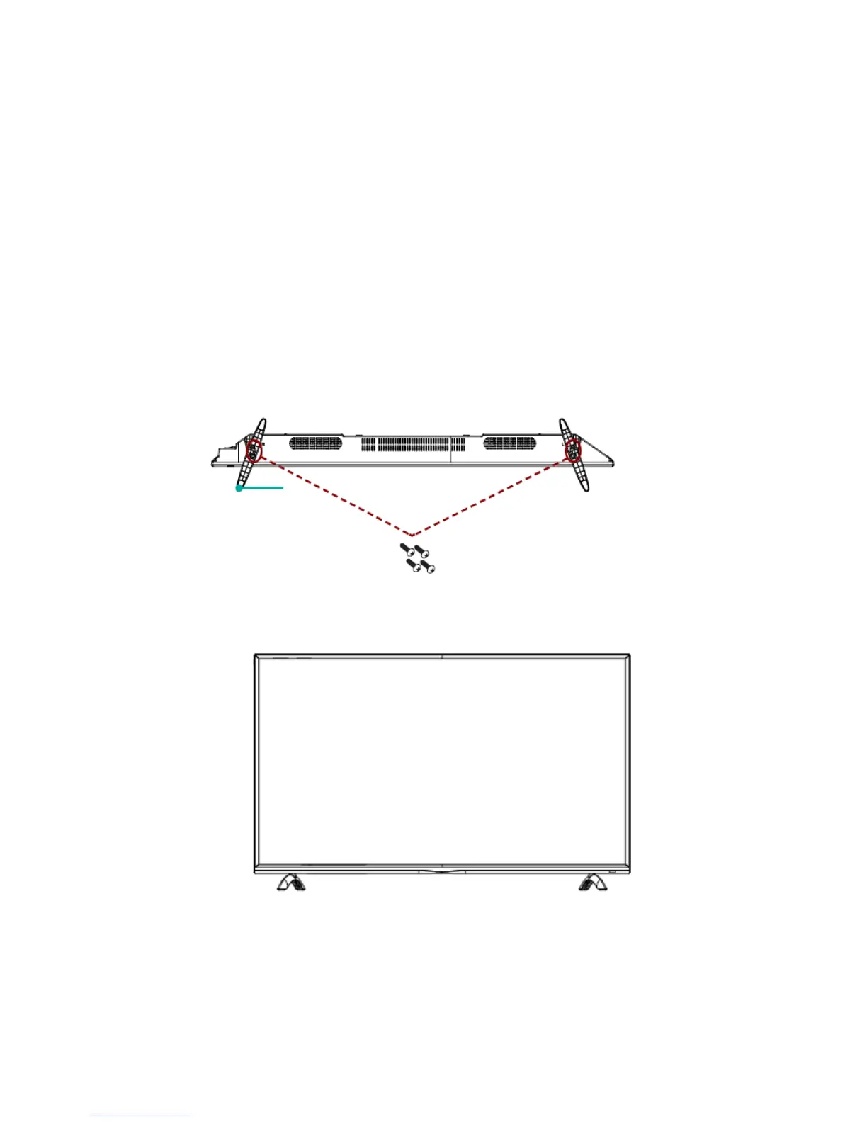 5. Placer les pieds dans les fentes au bas de la TV, insérez et resserrez les vis (disponibles dans