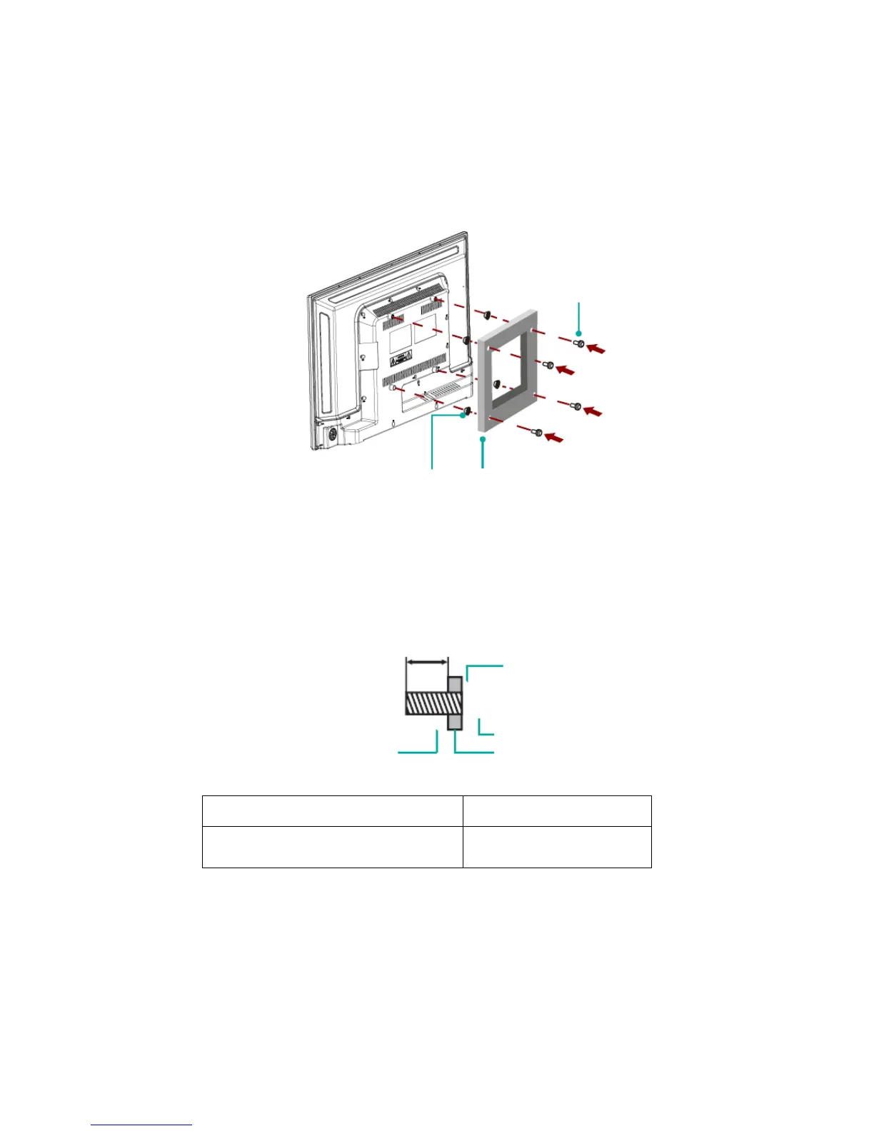 assurez-vous d’utiliser des vis de montage (non fourni) d’une longueur de 10 mm de la surface