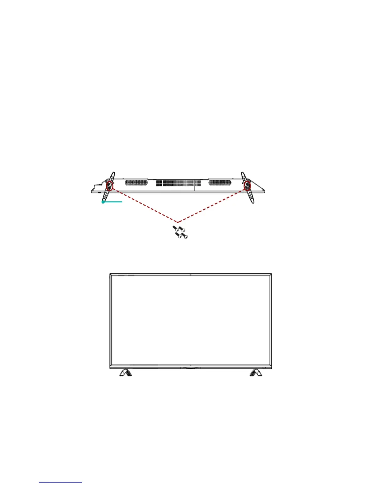 2. Place the legs into the bottom slots of the TV, insert and tighten the screws (found in the