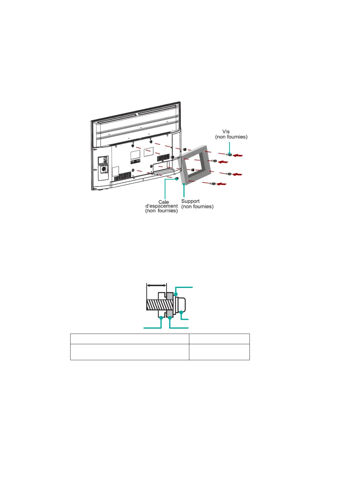 • Lorsque vous assemblez le support, assurez-vous d’utiliser les cales d’espacement (fournies