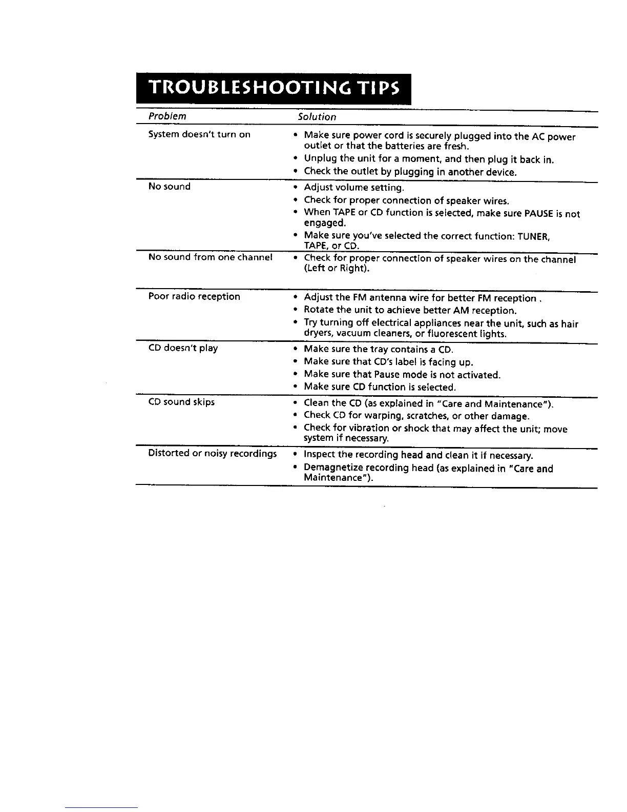 CD sound skips • Clean the CD (as explained in "Care and Maintenance").
