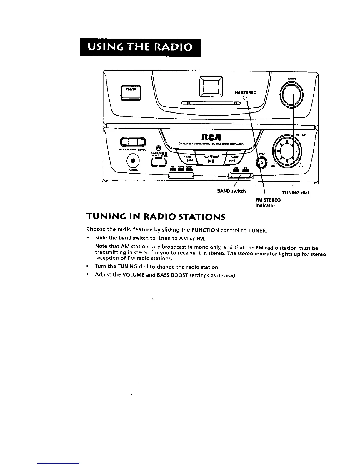 Choose the radio feature by sliding the FUNCTION control to TUNER.