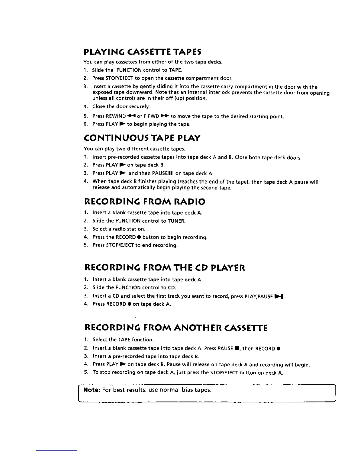 3. Press PLAYI_ and then PAUSEII on tape deck A.