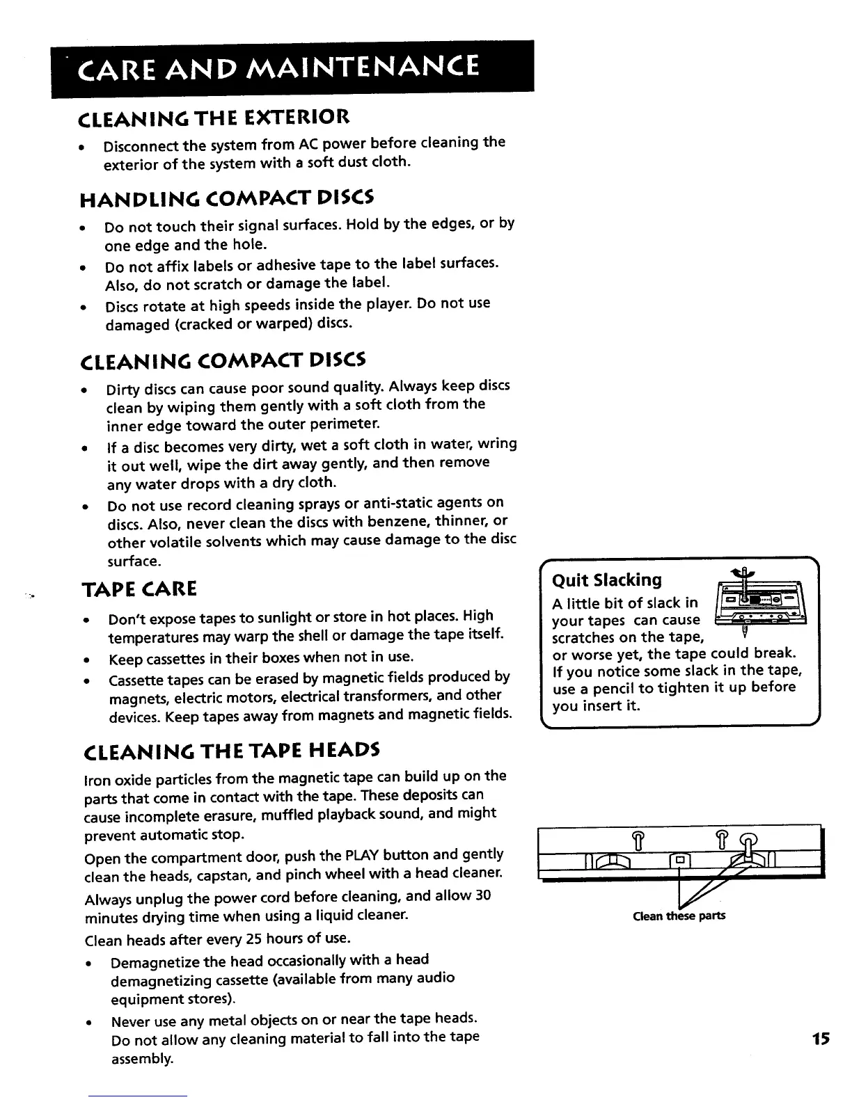 • Never use any metal objects on or near the tape heads.