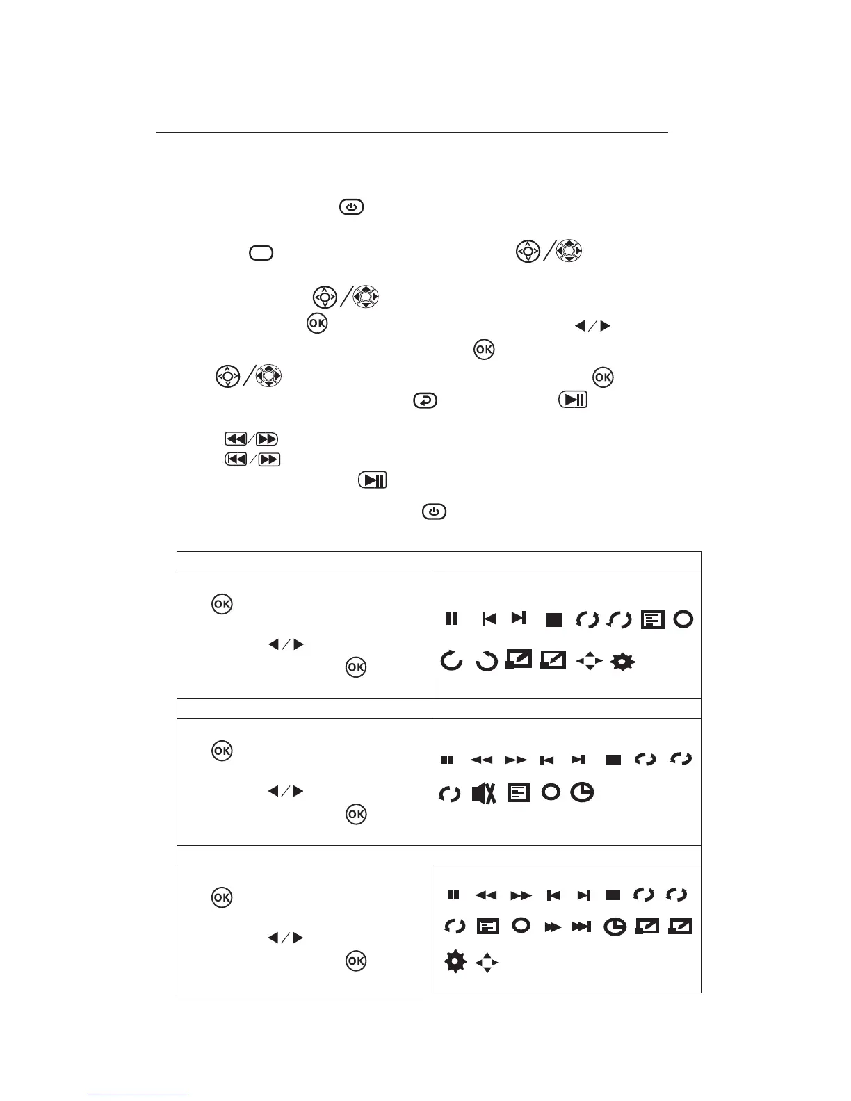 5. Aer selecon, use buons to search the MUSIC / PHOTO / MOVIE