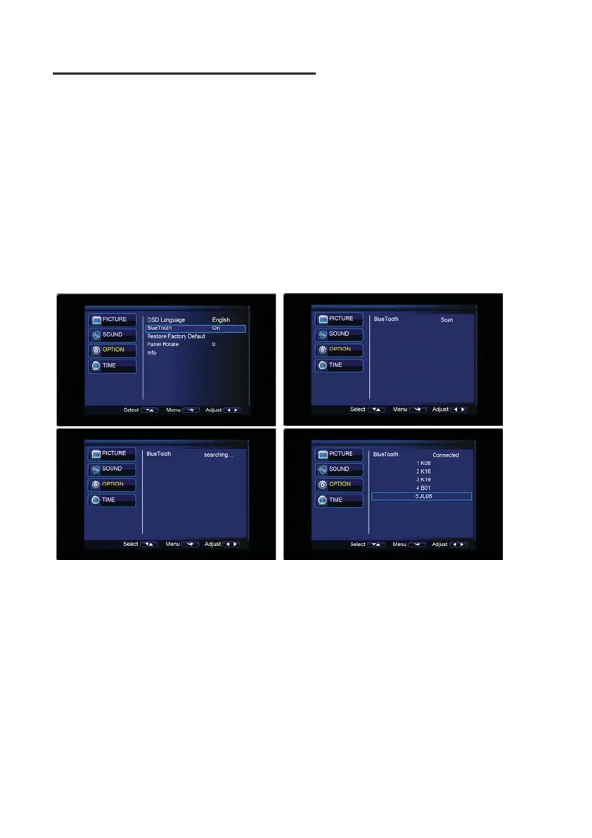 above). Press the menu key from the remote>>>select OPTION>>>select BlueTooth>>>press the