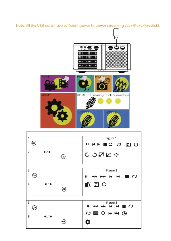 Select “ MOVIE”, “MUSIC”, “ PHOTO” to enter the content you want to play.