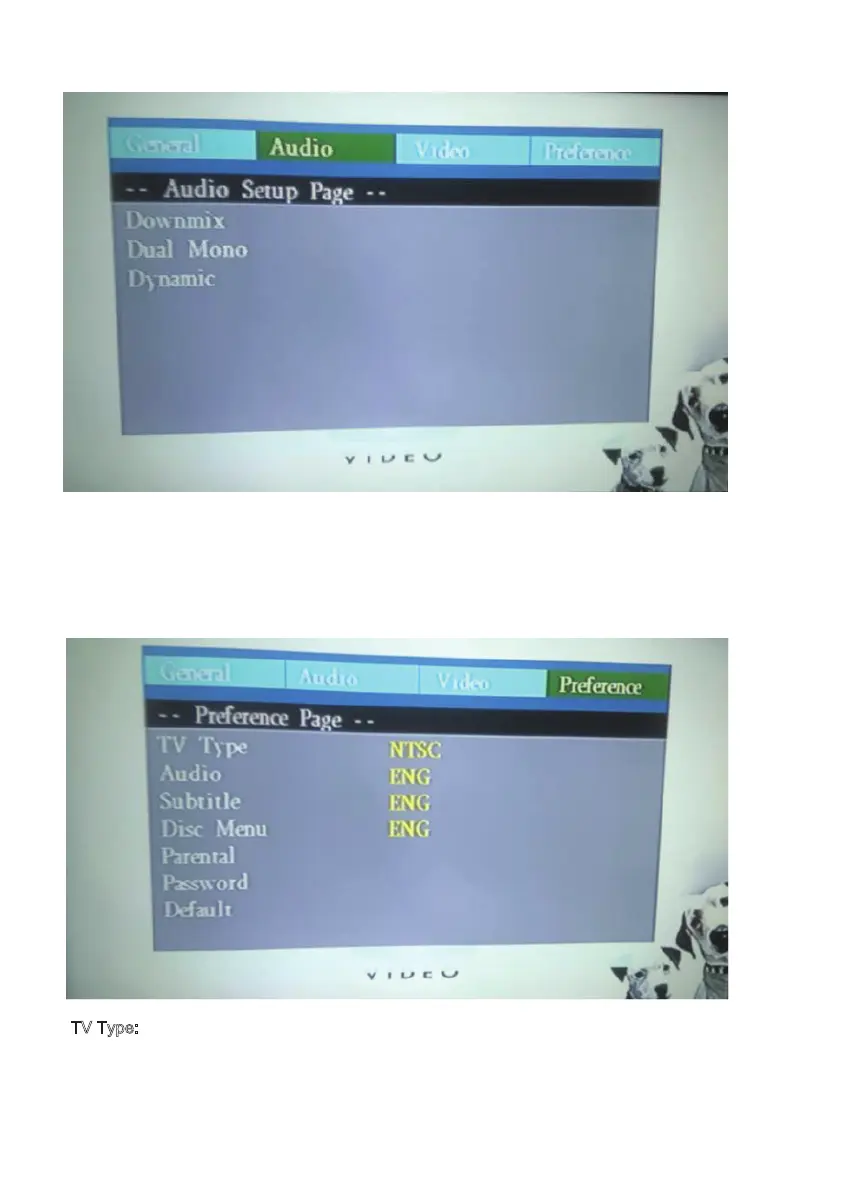 television. Use to select the TV types, include PAL/AUTO/NTSC.