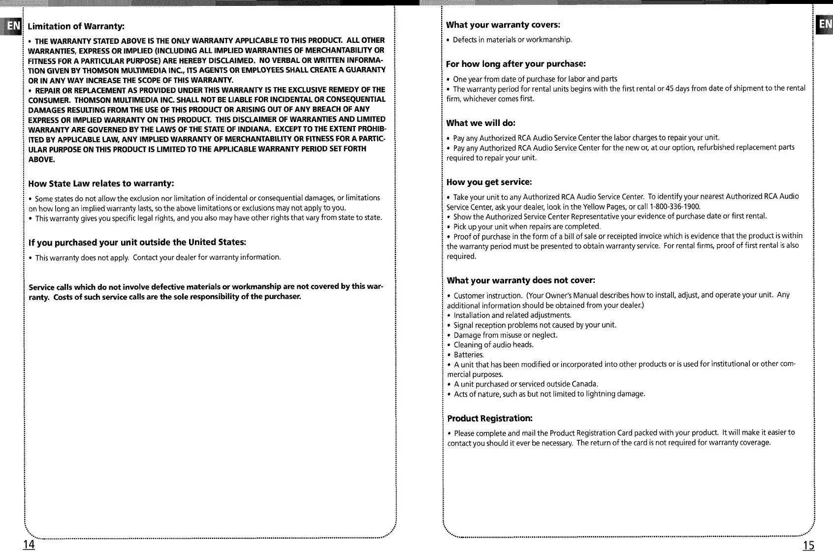 • Take your unit to any Authorized RCAAudio Service Center. To identify your nearest Authorized RCA Audio