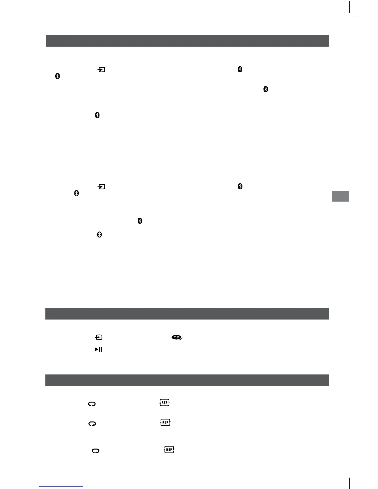 Pressez la touche /MEM.UP jusqu’à ce que “ ” clignote sur l’écran. La piste en cours sera lue de façon répétitive.