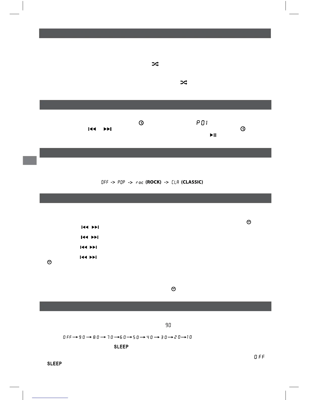 Durant la lecture, pressez la touche PRESET EQ pour sélectionner le mode de musique désiré. Chaque fois que vous