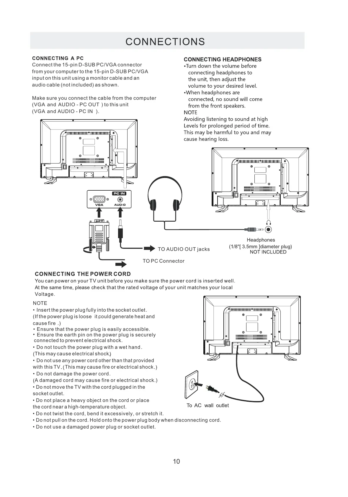 Do not move the TV with the cord plugged in the
