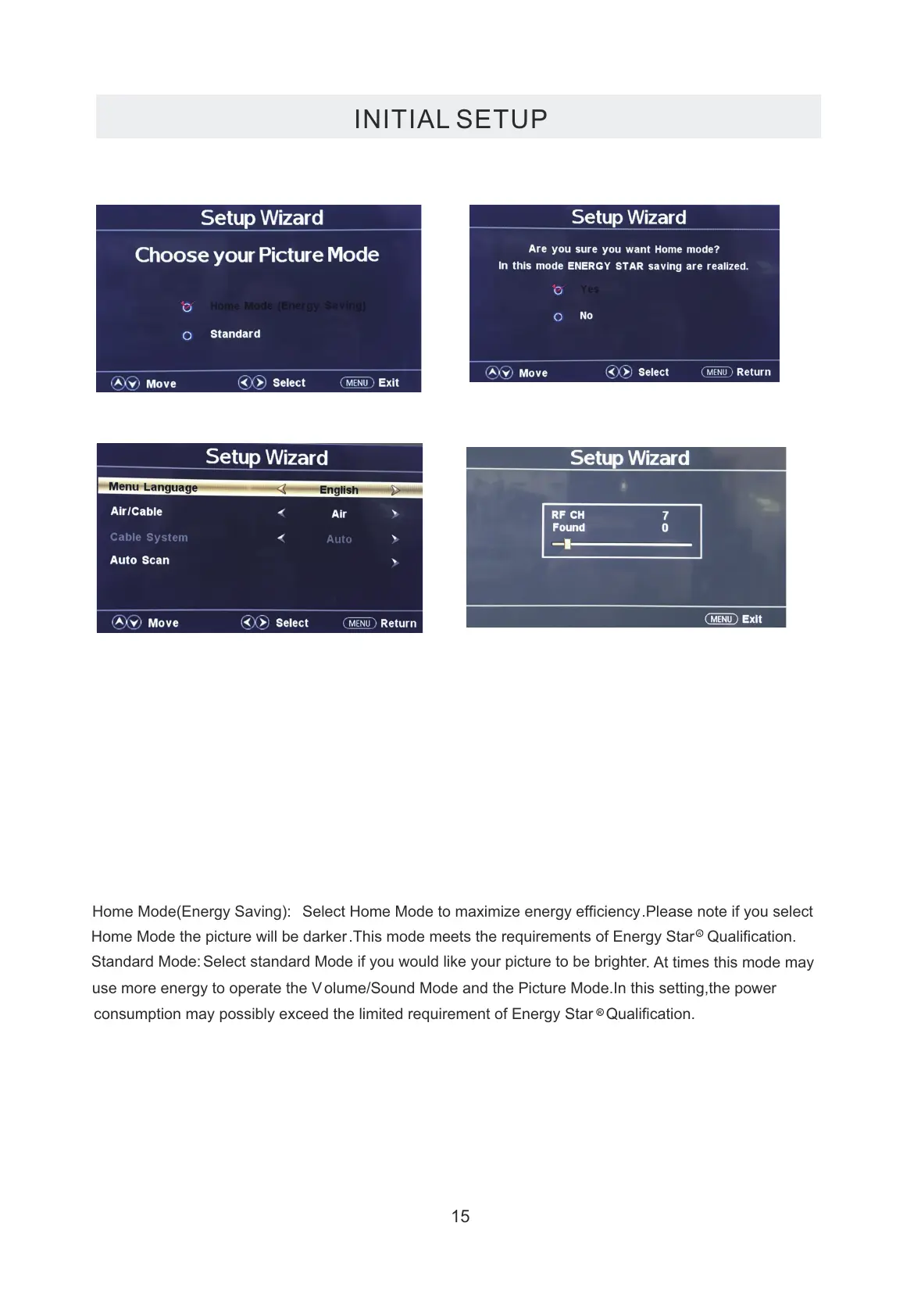 Home Mode the picture will be darker.This mode meets the requirements of Energy Star Qualification.