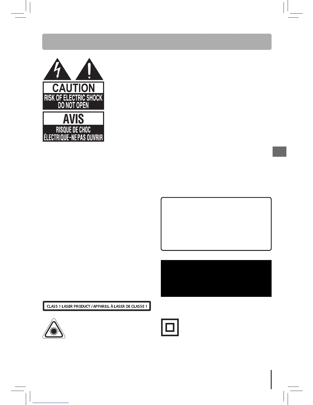 AVERTISSEMENT: POUR RÉDUIRE LE RISQUE D'INCENDIE OU DE CHOCS