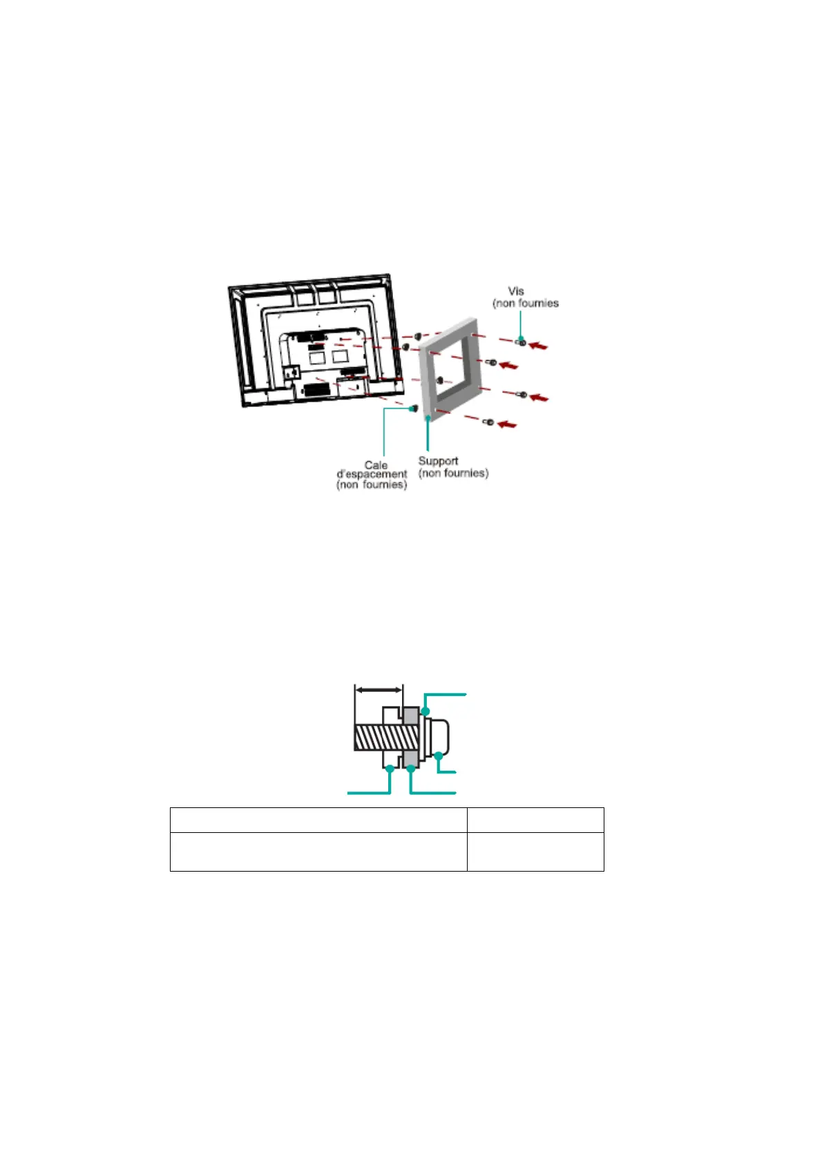 • Lorsque vous assemblez le support, assurez-vous d’utiliser les cales d’espacement (fournies