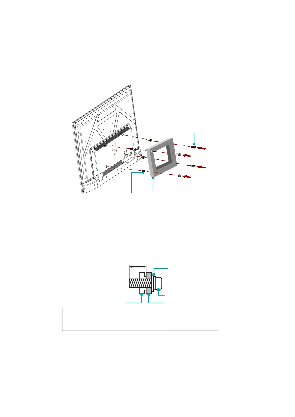 assurez-vous d’utiliser des vis de montage (non fourni) d’une longueur de 10 mm de la surface