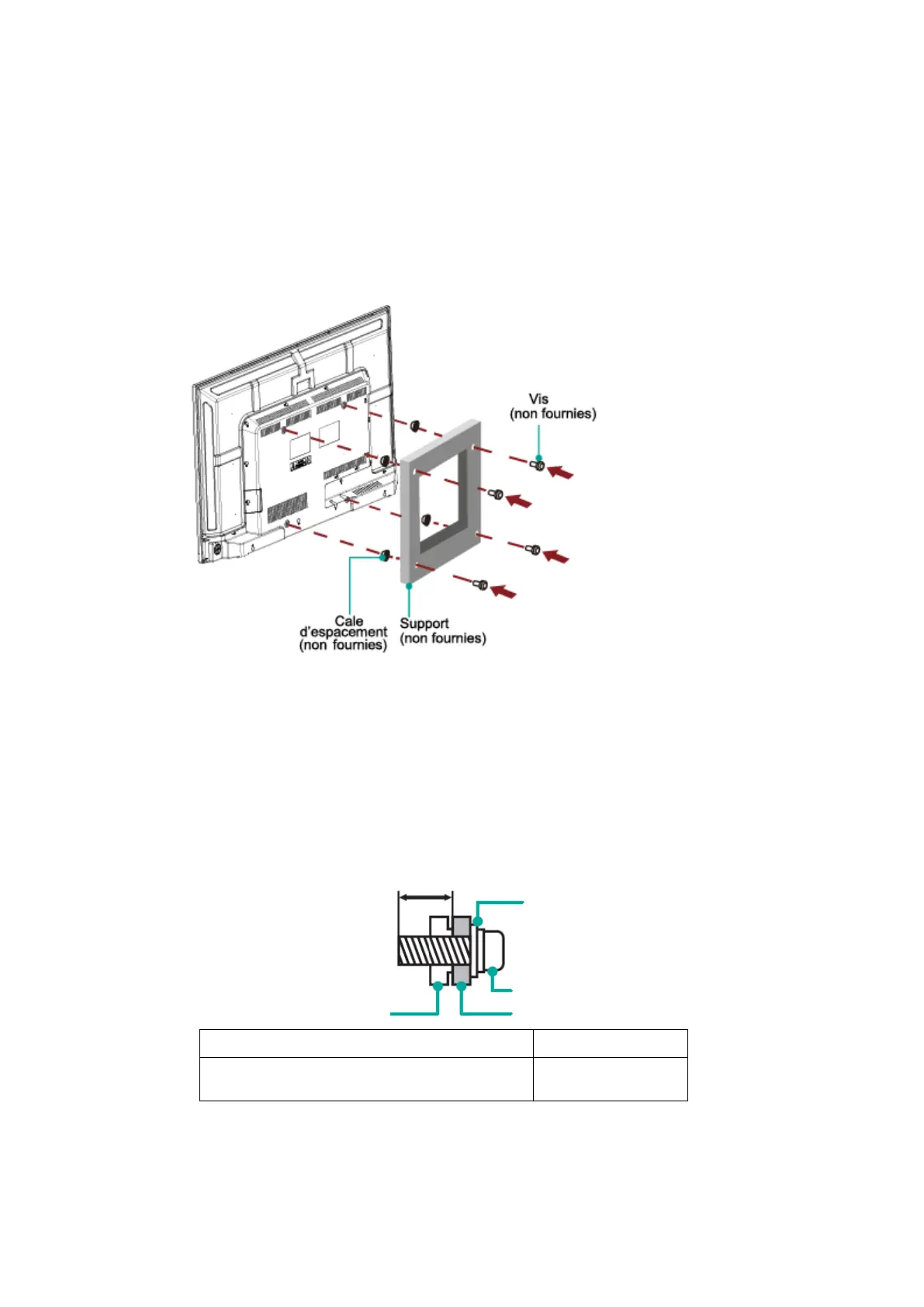 • Lorsque vous assemblez le support, assurez-vous d’utiliser les cales d’espacement (fournies