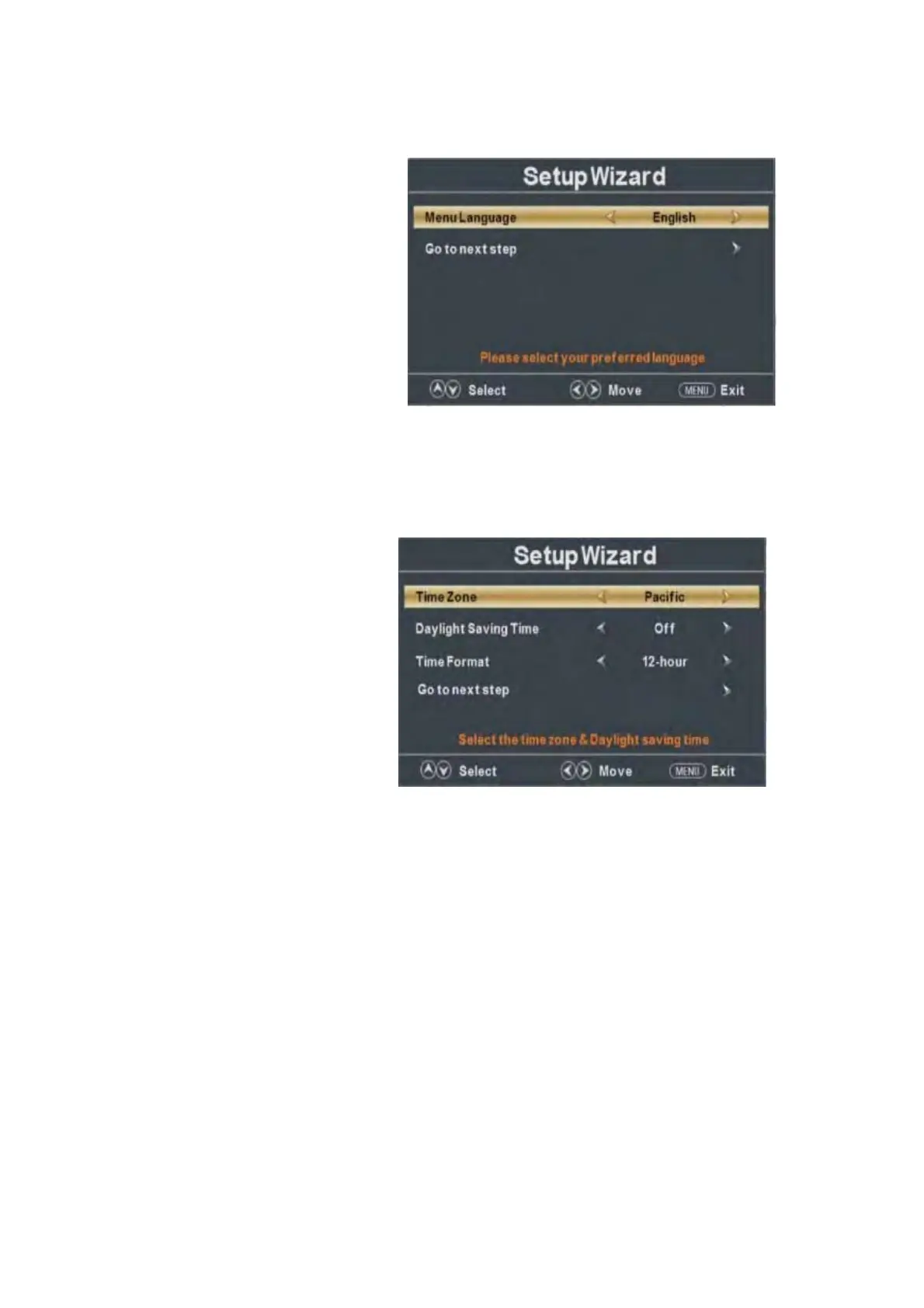 e. Appuyez sur le bouton « / » pour sélectionner « Time Format » (« Format de l’heure »),