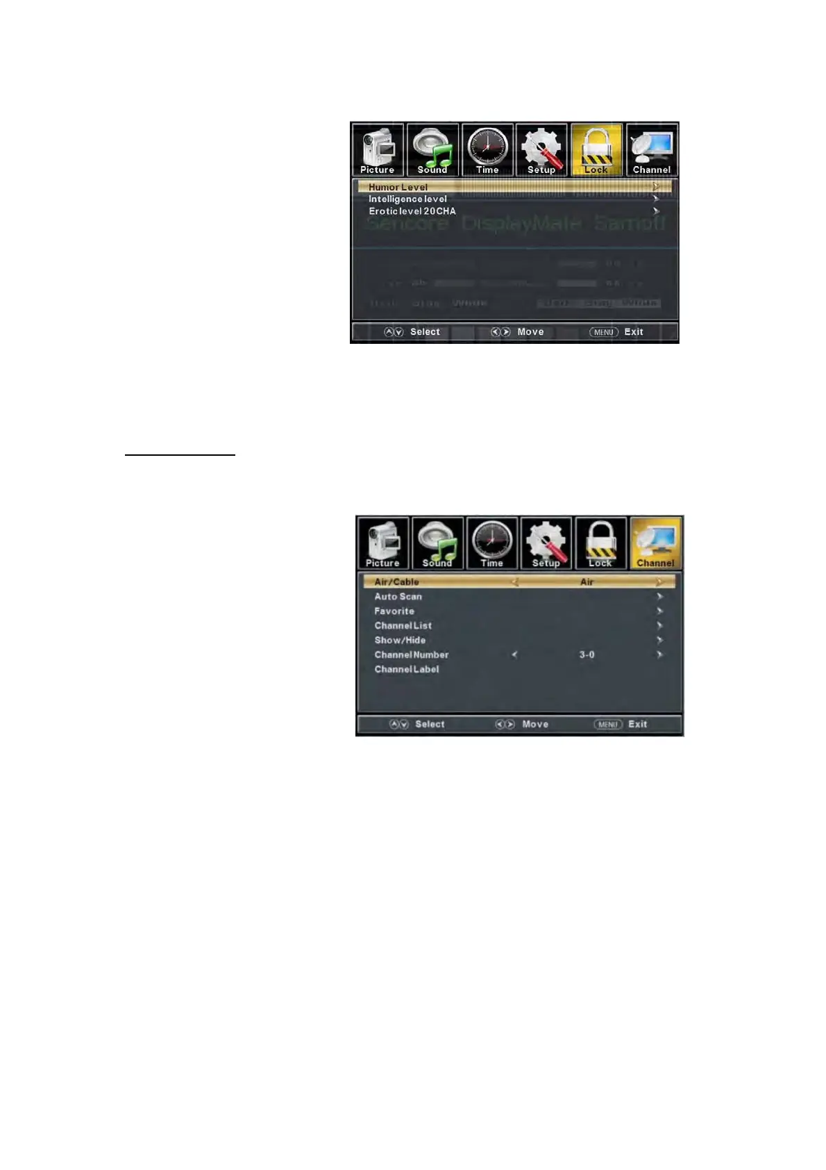 7. Appuyez sur le bouton « / » pour sélectionner « Channel Label » (« Étiquette de chaîne »),