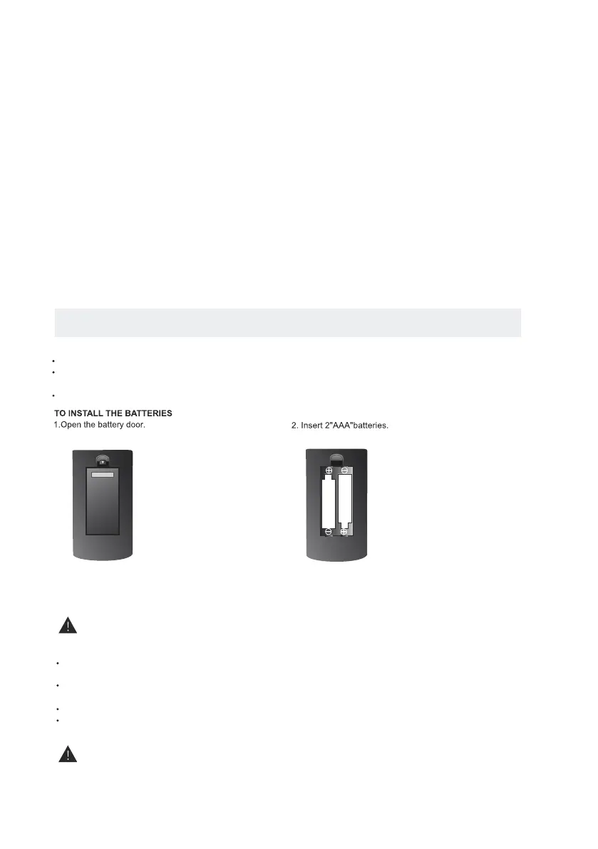 ·If the remote control is not going to be used for a long time, remove the batteries to avoid